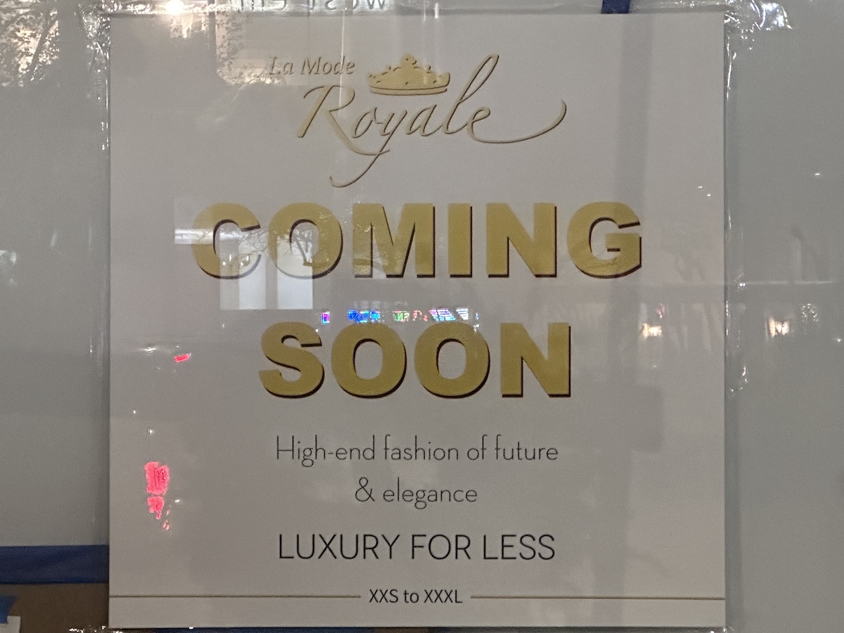 La Mode Royale, a boutique specializing in high-end fashion for all shapes and sizes, is preparing to open its second location at 1875 Broadway between West 61st and 62nd streets, per signage in the window.