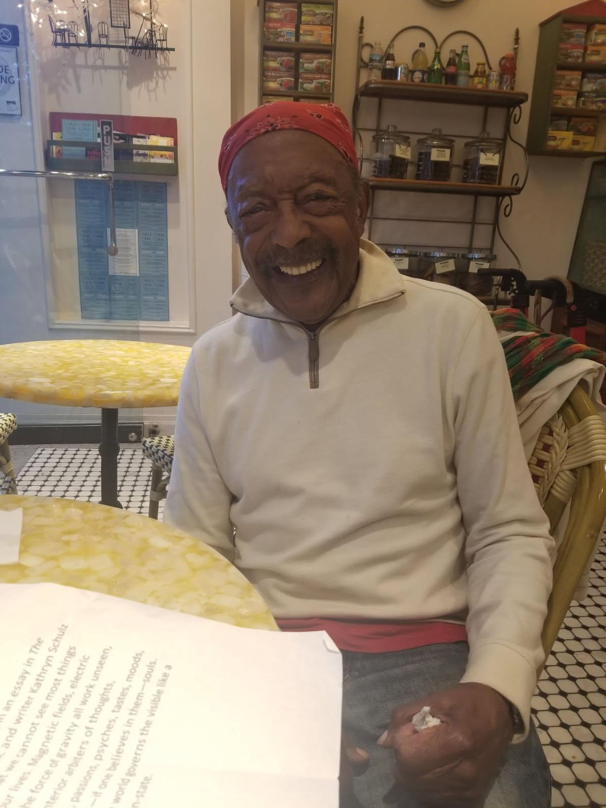 Flowers and a memorial note sat on Theo’s bench at Muffins Café on Friday, November 21. Theodore Dixon, 100, had passed away the day before. The World War II Navy veteran, who attended the distinguished Bruton Heights School in Williamsburg, Virginia, had been briefly hospitalized and was recovering at The Riverside on the Upper West Side before peacefully drifting away in his sleep that morning, without pain. A group text was started by those who loved him to honor a man who was a beloved neighborhood fixture, known for his beautiful spirit, kindness to children and dogs, and wisdom.